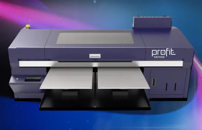 • Área de Impressão de 30cm; • Velocidade e eficiência adequados à projetos de menor escada; • Tinta pigmentada à base de água; • 5 cores – CMYK+Branco • Aplicabilidade: tecidos em geral